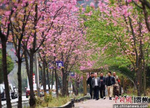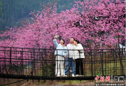 “没有想到这里的樱花这么快就开了,行走在粉红色的花海中,花的芳香扑面而来,令人流连忘返,拍下美美的照片回去给朋友看,让大家前来观赏美丽的樱花,尽情享受着自然山水的馈赠。”来自安顺的游客刘女士说。