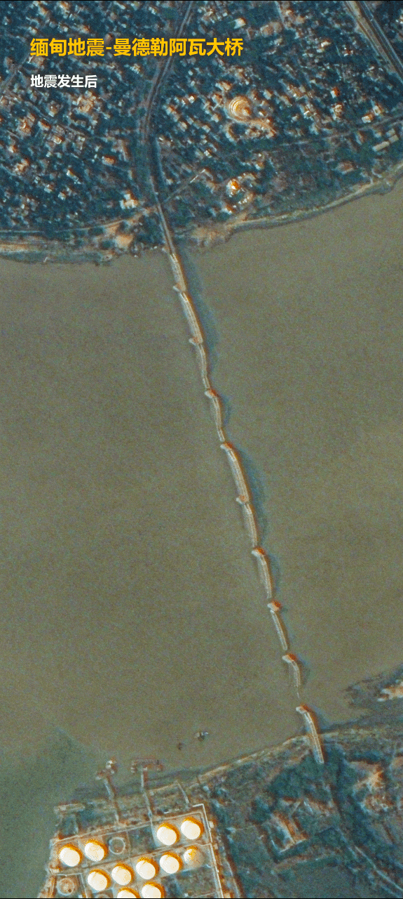 桥梁损毁、大量建筑物倒塌!卫星影像对比缅甸中部强震前后变化,触目惊心
