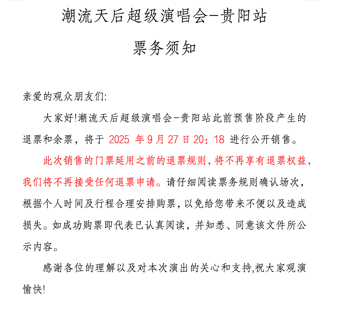 潮流天后超级演唱会-贵阳站即将开启二次售票!为了让大家顺利奔赴这场音乐盛宴,这份购票须知请务必收藏好