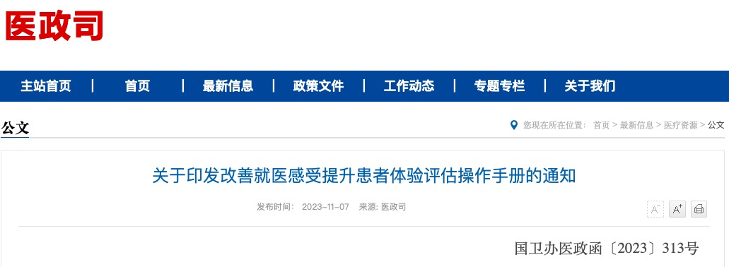 动静健康 | 国家卫生健康委发布《改善就医感受提升患者体验评估操作手册》