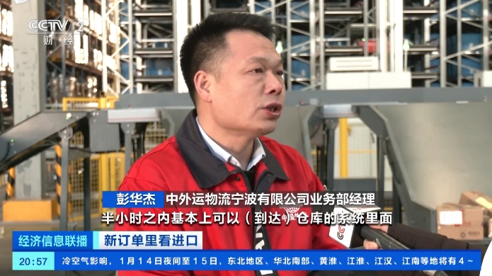 中外运物流宁波有限公司业务部经理 彭华杰:消费者下单以后,基本上半小时之内可以到达仓库的系统里面,仓库系统就会进行排产。最快的包裹,正常仓库半个小时之内就会完成打包作业交给快递,有的当日就可以收到货。