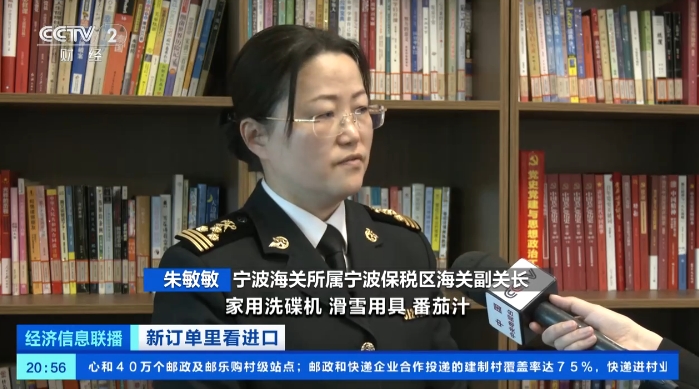 宁波海关所属宁波保税区海关副关长 朱敏敏:跨境电商进口的商品清单新增的是家用洗碟机、滑雪用具、番茄汁,还有游戏操纵控制器等29项近年来比较受欢迎的商品。