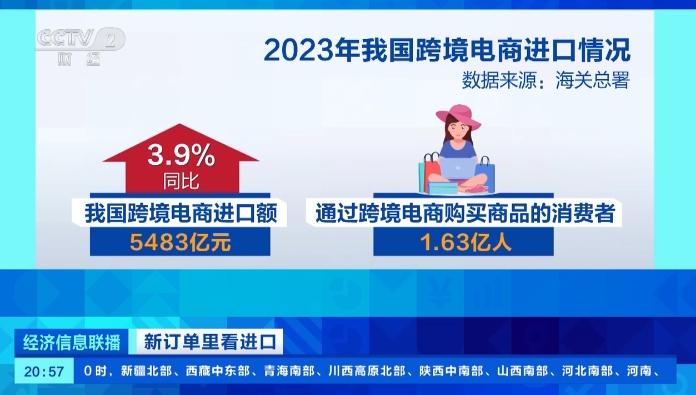 专家表示,跨境电商已经成为全球贸易的一股“新势力”。2023年,我国跨境电商进口额达5483亿元,同比增长3.9%,通过跨境电商购买商品的消费者达1.63亿人。