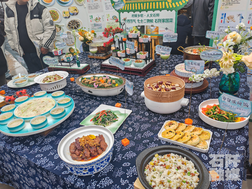 当天,有一支特别的队伍并未参与竞技评比,而是将舞台变成了石阡美食文化的展示窗口,他们以二十四节气为灵感,将传统农耕智慧与现代烹饪技艺相融合,用一道道匠心独运的创意菜品讲述着石阡人与土地、与时节的深厚情缘,这支队伍推出的豫章燕归来、春雷惊笋鲜、布谷催耕饭等一道道菜品名称如诗画般在眼前铺展开,各佳肴色泽鲜亮、香气扑鼻,引得现场观众纷纷驻足围观。