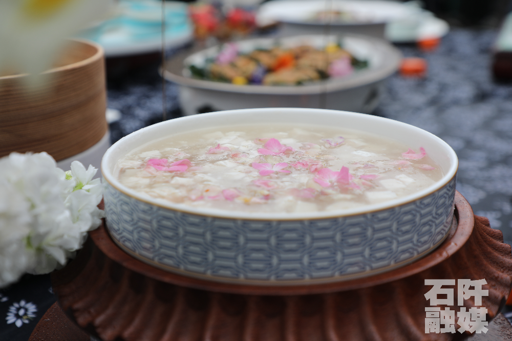 “我们石阡家国菜是遵循一年中的二十四节气,七十二物候的自然现象,根据每个物候大自然所馈赠的天然、生态,具有石阡特色的食材,经过精心烹饪出的一道道营养、健康、独具石阡人文特色的菜品。比如说这一道叫‘静心苔茶羹’,它是用我们的石阡苔茶、银耳精心熬制的一道甜品,它的寓意是茶羹静心养气,寓意内敛沉淀。”石阡县“村味”美食推荐官赵漫告诉记者。