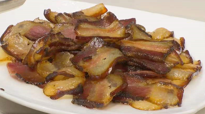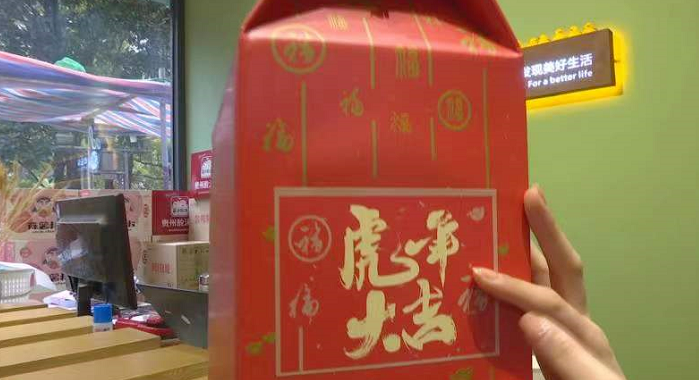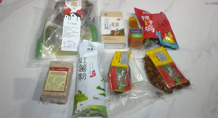记者 李旭涵:哇...这么丰富的大礼包,可以说是数量多、分量足,我一定要先替大家尝一尝……大蹄髈、腊肉、香肠、红香米,一桌年夜饭整整齐齐、香喷喷。红香米的口感软糯香甜,而香肠一口咬下去满满的年味!