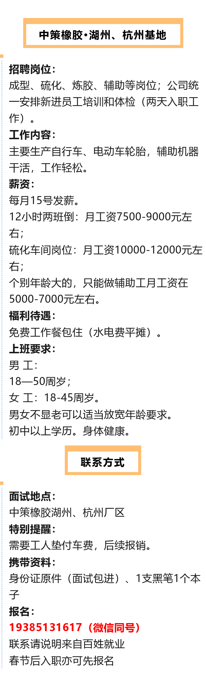 【知名企业】中策橡胶招聘!月薪5000~12000元!免费工作餐、包住!