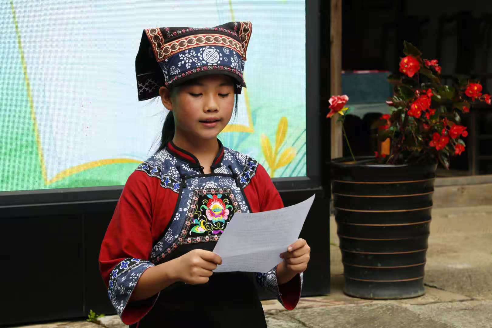 活动在惠水县辉岩小学孩子们天籁般的歌声中拉开序幕。布依族经典民歌《好花红》在童声演绎下焕发新生,清澈的音符不仅传递着民族文化的醇美,更承载着孩子们对知识的渴望,让整个书院沉浸在温暖动人的氛围中。