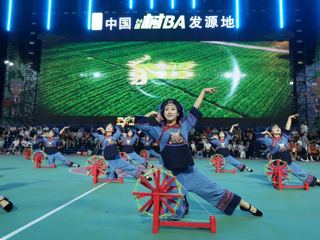开幕式及比赛间隙,独具贵州特色的民族文艺展演轮番登场,苗族歌舞、民族表演等精彩节目与赛事同步进行,为全场观众献上一场场精彩纷呈的视听盛宴。场边助威更是尽显“村BA”独特风情,各支队伍的啦啦队活力满满,成为赛场外最亮丽的风景。