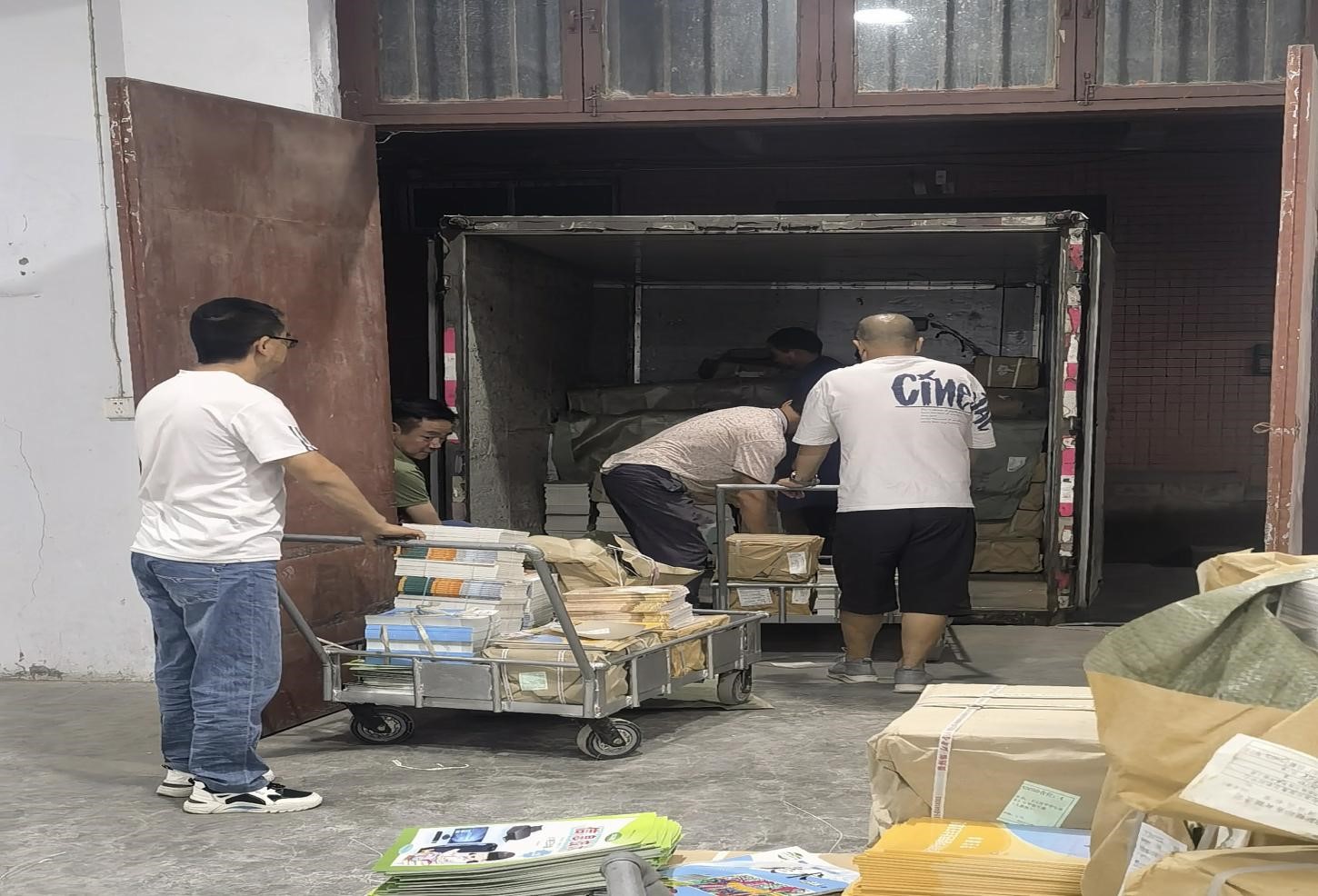教材入库发放期间,六盘水市新华书店有限公司六枝特区分公司安排人员24小时值班值守,做到教材车辆随到随卸、并认真核对,为教材及时发放提供保障。其次要求全体人员要做好疫情防控及安全生产的各项工作,确保发行、防疫“两不误、两促进”。同时加强对工作人员、装卸人员、运输司机疫情防控相关工作的检查,要求全程佩戴口罩,确保进入办公场所的人员登记和信息备案,组织专人负责严格消杀,对仓库、教材包件、配送货车进行消毒,确保教材无污染,安全分发到各学校。