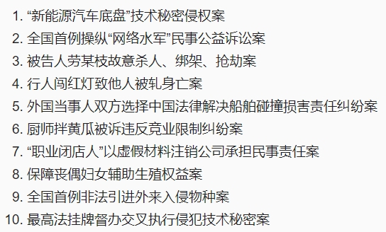 入选“新时代推动法治进程2024年度十大案件”的有:
