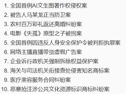 活动还揭晓了“新时代推动法治进程2024年度十大提名案件”,分别为: