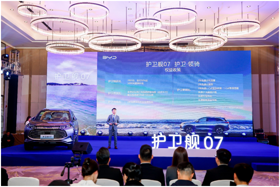 比亚迪海洋网推出的护卫舰07是新能源、新设计、新技术、新产品的最好诠释。定位全新大五座超混SUV,作为比亚迪海洋网军舰系列重磅SUV,护卫舰07采用比亚迪“海洋美学”设计理念、DM-i超级混动技术,同时提供100km和205km两种纯电续航选择,是同价位唯一拥有205km纯电续航的大五座超混SUV,专注于满足家庭用户期待,助力进阶梦享生活家。
