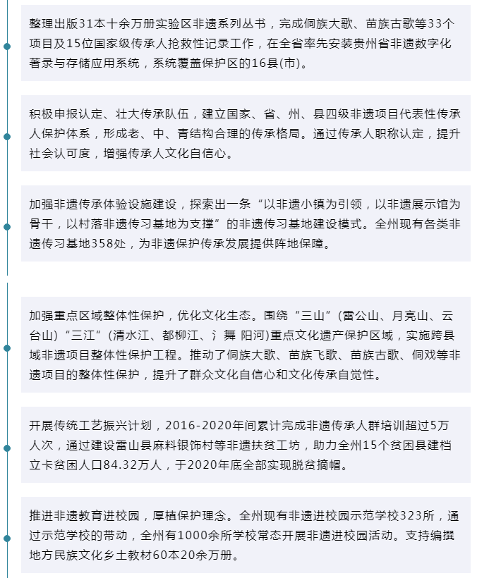 此外,以总体规划为蓝图,以保护非物质文化遗产为核心,黔东南州实现“非遗+”融合发展三大创新: