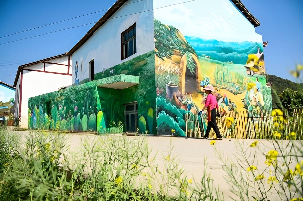 推进乡村振兴,黔西南州坚持把产业振兴作为乡村振兴的重中之重,按照“产业兴旺、生态宜居、乡风文明、治理有效、生活富裕”的目标稳步推进,以农村环境综合整治、美丽乡村建设为载体,抢抓发展机遇,将美丽乡村融入墙绘艺术,使原本“冷冰冰”的墙面瞬间灵动起来。一笔一画间,党的方针政策、乡风文明、民族团结、宣扬社会风气,党的声音通过墙绘作品被活灵活现地展示在墙上,传递到生活在这方山水的民众心里,走在黔西南州的乡野,一个个美丽乡村扑面来。