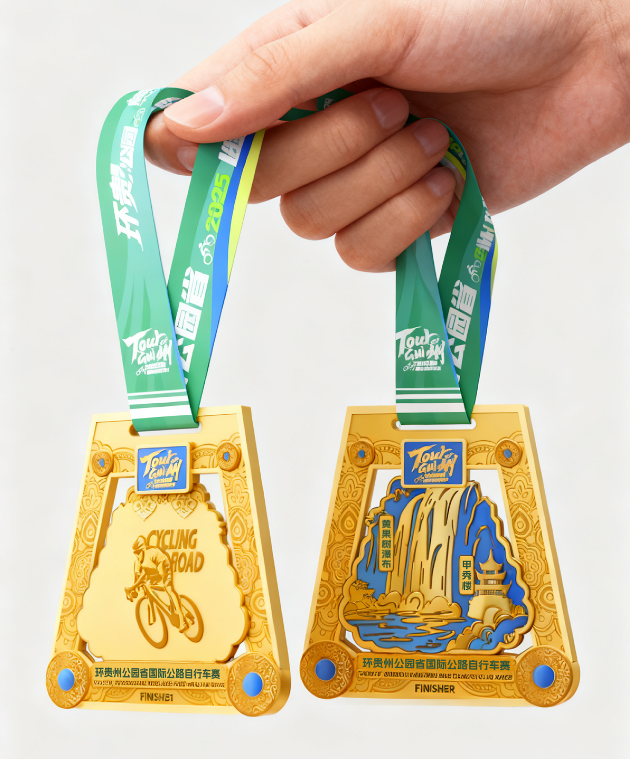 奖牌设计:可拼接式“贵州立体风光塔”奖牌(含黄果树、梵净山等7大地标),首创赛段奖牌收藏体系;
