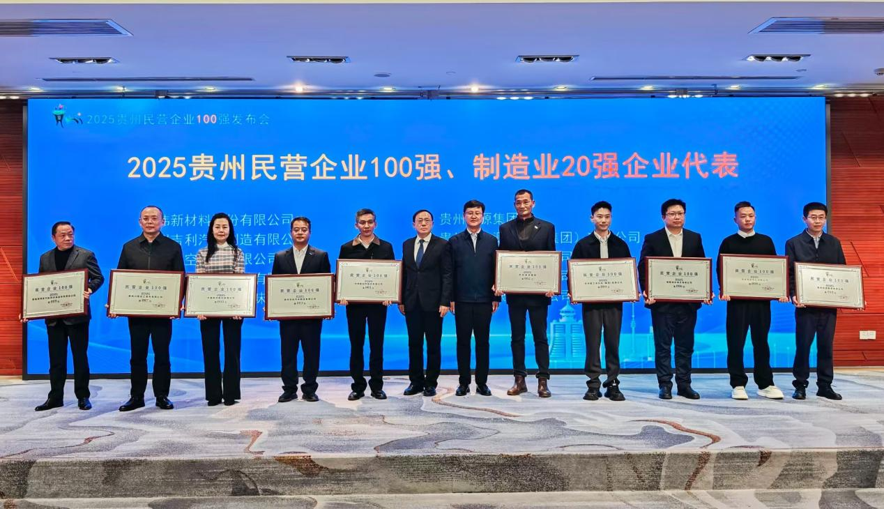 12月24号,贵州省工商业联合会在贵阳召开2025年贵州民营企业100强发布会,发布了“2025年贵州民营企业100强榜单”及“2025年贵州民营企业制造业20强榜单”。