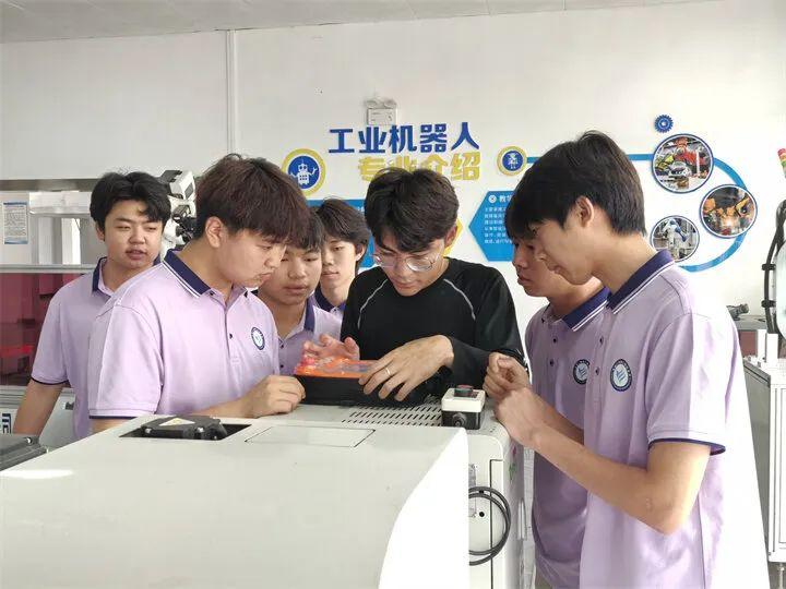 走进学校实训室,工业机器人专业课堂生动展现着“产教融合”的魅力。教师现场讲解操作要点,学生们分组围在设备前动手实践,将刚学完的机械原理、编程知识迅速转化为实操技能。“在这里学习,理论与实践紧密结合,学完就能上手操作机器人。”工业机器人应用技术专业学生王斌说道。