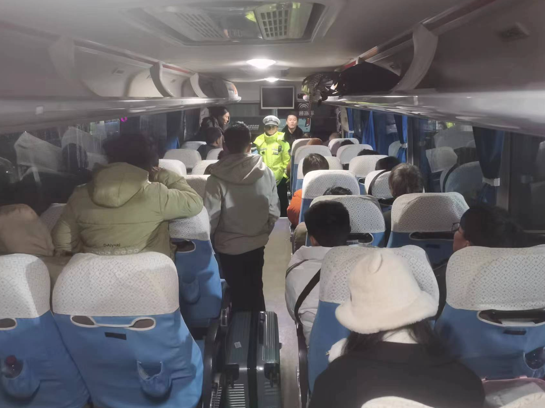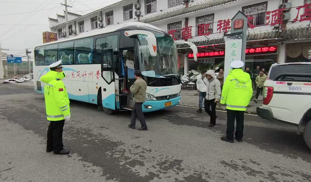 1月22日晚,一辆载有34名乘客的大巴车因天气凝冻滞留六枝,六枝特区公安局交警大队联合月亮河派出所联合开展紧急救援,妥善安置所有滞留人员,并在公路解封后将旅客平安送至目的地。