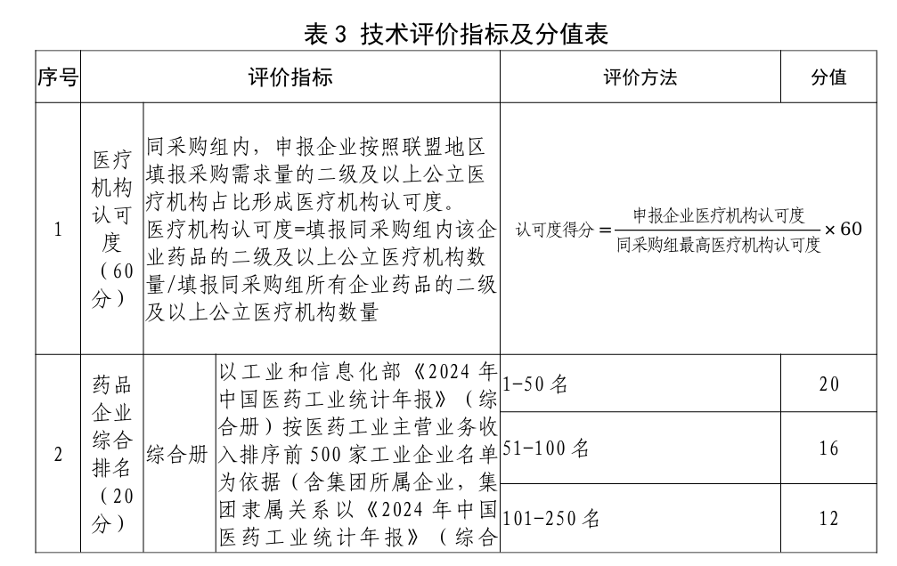 竞价方面,同采购组内,分为A、B两个竞争单元,分别竞争。竞争单元内,按照符合“申报资格”的实际申报企业的综合得分由高到低排序,确定入围企业。根据报价代表品降幅以及医疗机构认可度、综合排名、创新能力、药材品质、供应保障、信用评价、质量安全等因素综合得分,产生入围企业。综合得分=价格竞争得分×60%+技术评价得分×40%。