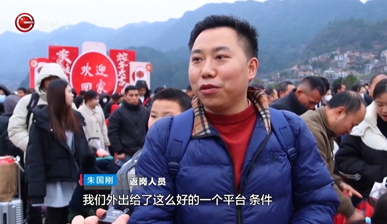 返岗务工群众朱国刚:感谢给我们外出务工人员这么好的一个平台,去年我们也坐了这个返岗的车,很贴心。