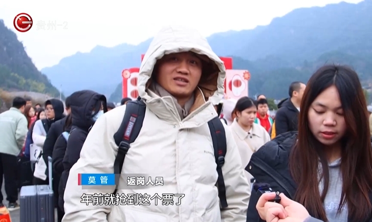 返岗务工群众莫管:返程一票难求,年前就抢到这个票了,所以回去比较安心。
