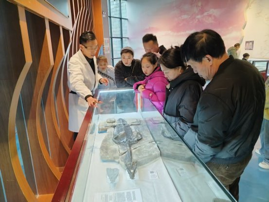 在讲解员的带领下,孩子可以近距离观察化石的纹理,了解贵州龙的生活习性和演化历史,还能参与“化石挖掘”模拟体验,亲手“挖出”迷你化石模型,在玩乐中学习古生物知识,激发探索自然的好奇心。