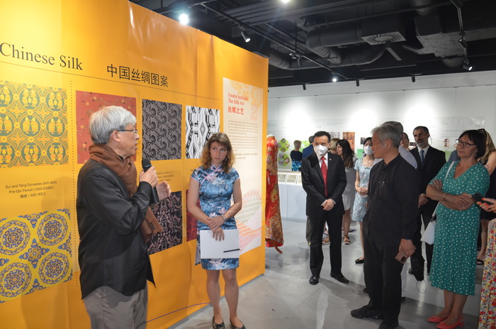 为促进中捷两国文化交流,由中国驻捷克大使馆、中国丝绸博物馆联合主办的“丝绸与丝路”展览开幕式于2022年8月19日晚在捷克首都布拉格举行。