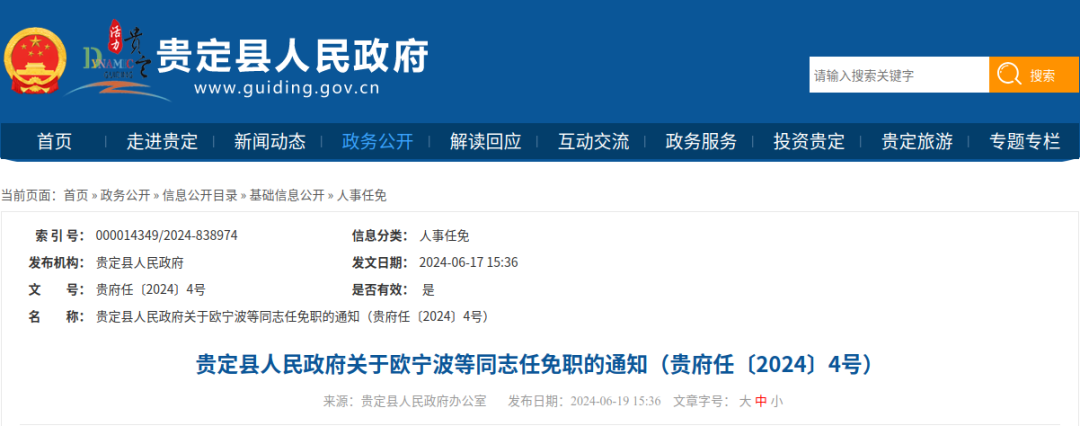 贵定县人民政府关于欧宁波等同志任免职的通知