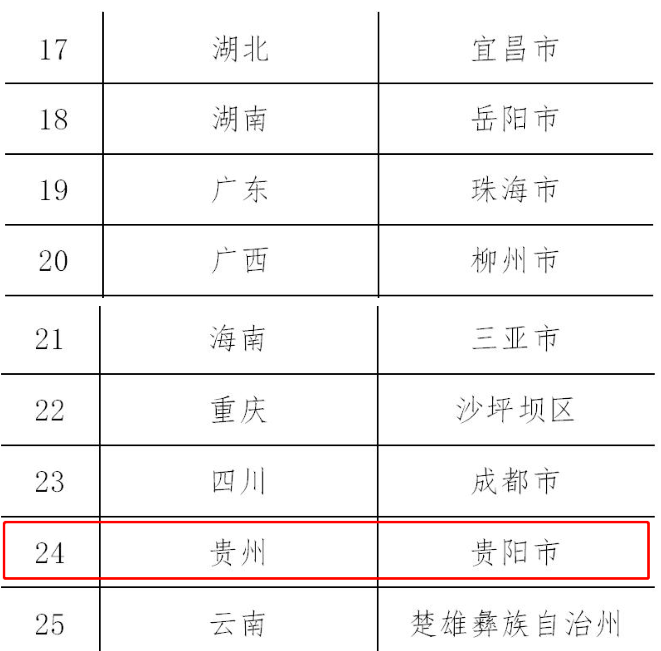 贵阳市位列2021年度各省(自治区、直辖市)健康城市建设样板市名单第24名。继贵阳市2016年作为贵州省唯一城市入选全国首批38个健康城市建设试点以来,再次上榜。