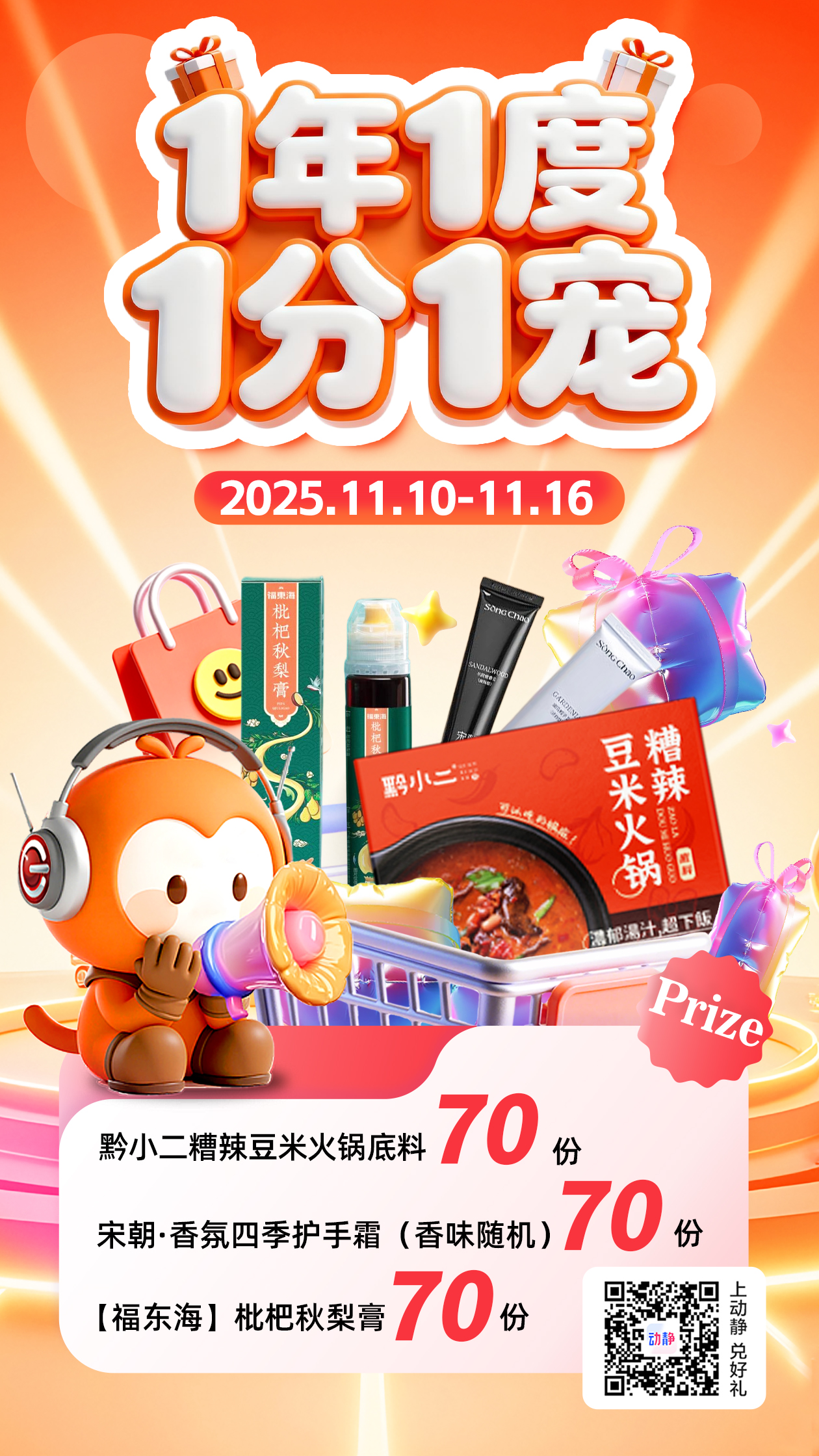 动静又宠粉啦!玩游戏免费抽火锅底料+护手霜+秋梨膏,手慢无