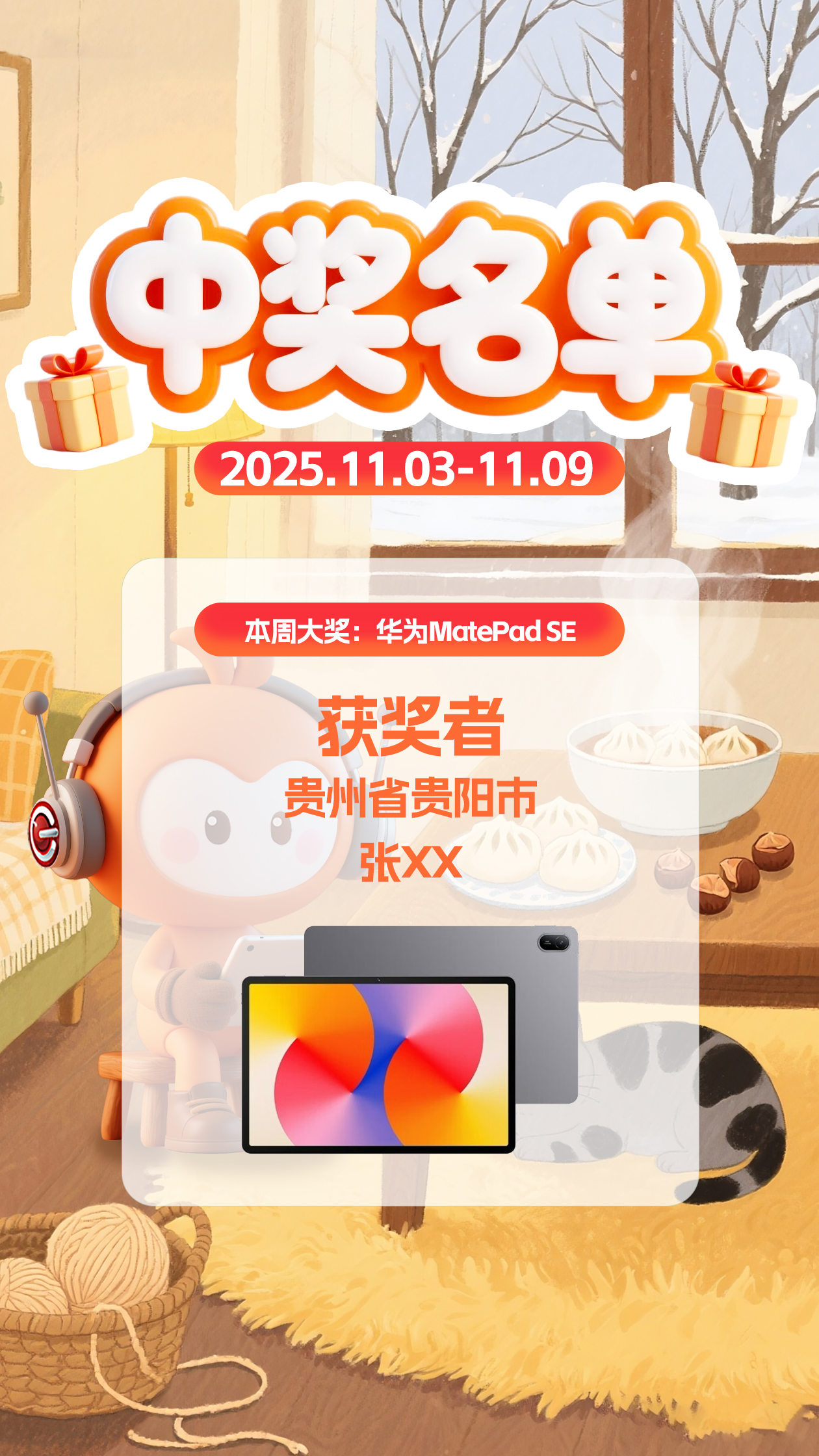 华为MatePad SE中奖锦鲤已诞生
