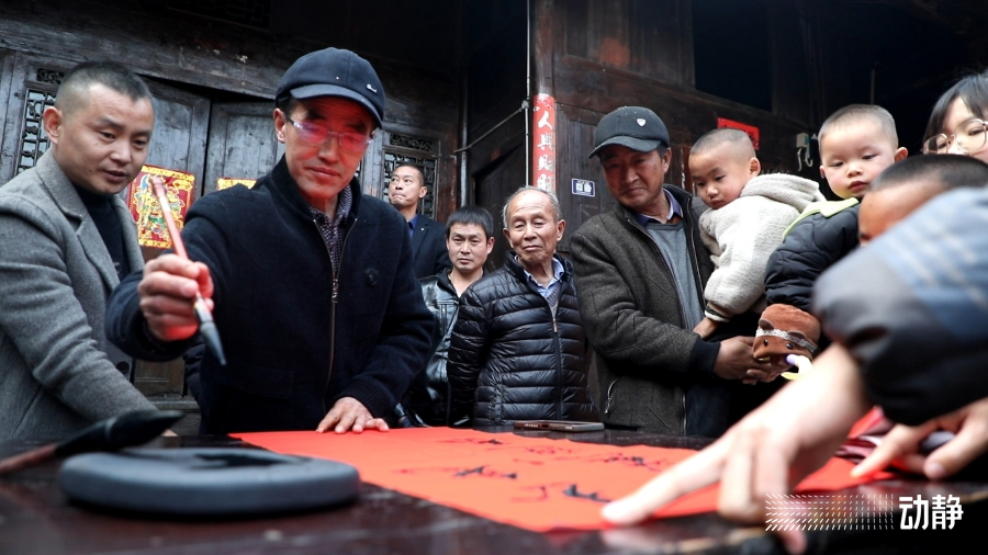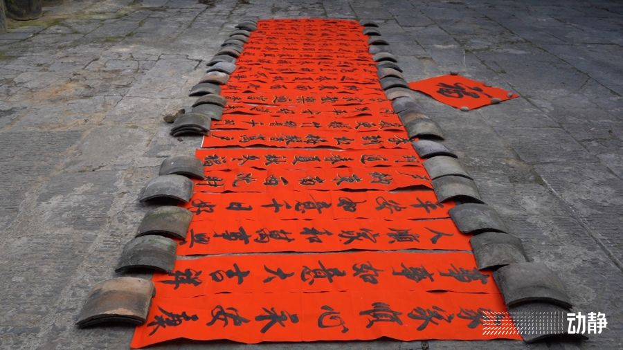 在注溪镇衙院村古韵十足的四合院里,村民们用自家的大方桌、岑巩特有的思州石砚台和火红的春联纸,搭建起了简单的春联书写台。村里的书法爱好者现场铺纸研墨,以笔墨承载祝福,为村民们送上寓意吉祥的春联和祝福满满的“福”字。
