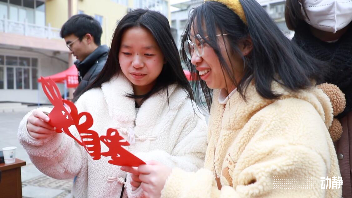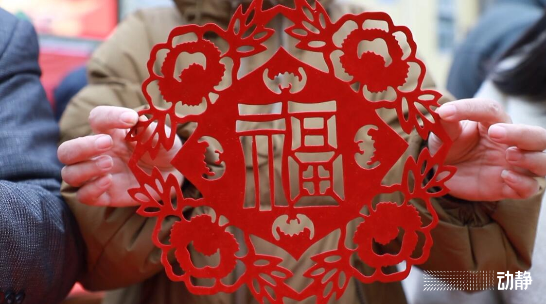 在丹寨县新时代文明实践中心,剪窗花的手艺人王正海手拿剪刀,在红色的纸张上精心裁剪,剪刀在纸张上来回飞舞之间,一幅“玉兔抱福”的窗花就剪好了。精湛的手艺和生动形象的图案吸引了不少过往市民前来围观。