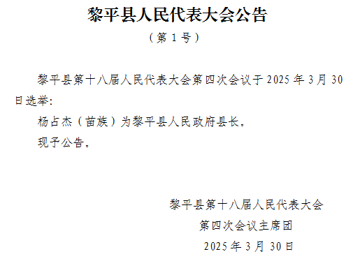 杨占杰当选黔东南州黎平县县长
