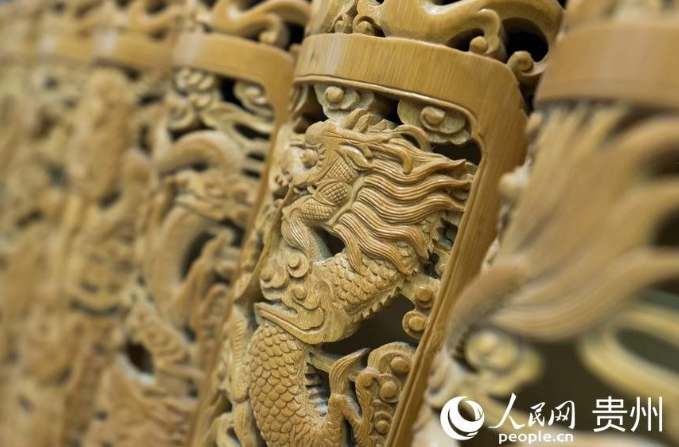 近日,贵州赤水竹文化博物馆内人气十足,精美的竹雕,雅致的竹扇,形式多样的竹制品引得不少游客驻足观赏。(涂敏 摄)