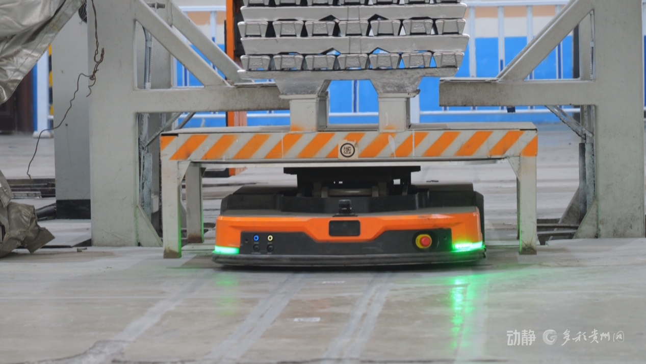 随后,在合金铸造工序,可以看到AGV转运车沿着预设路线自动完成堆垛、称量、打包、转运全流程作业。“今天目标产量 90 吨,每月订单稳定在 2000 吨,产品销往湘渝桂及园区下游企业。”铸造工聂星屿的话语里透着底气,自动化设备让生产节奏更稳、产能更有保障。