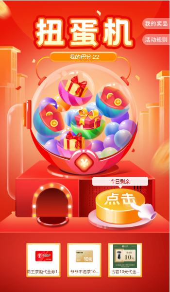用户参与扭蛋机就有机会获得奖品