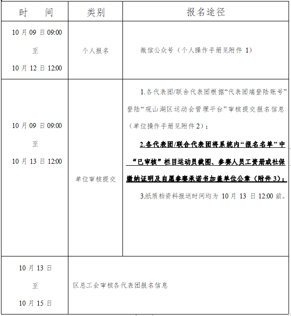*为科学规划并安排相关赛事,组委会将在指定时间关闭相应报名及审核端口,请各代表团严格按照上述时间要求完成报名工作。