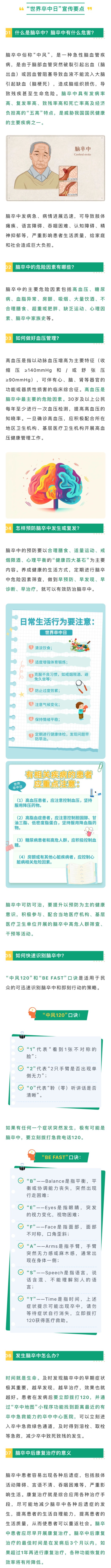 2023年10月29日是第18个世界卒中日。今年的宣传主题是“卒中识别早,救治效果好!”,通过世界卒中日主题宣传活动,提高脑卒中防治知识等信息传播可及性,有效普及脑卒中防治知识,提高群众自我防护意识。