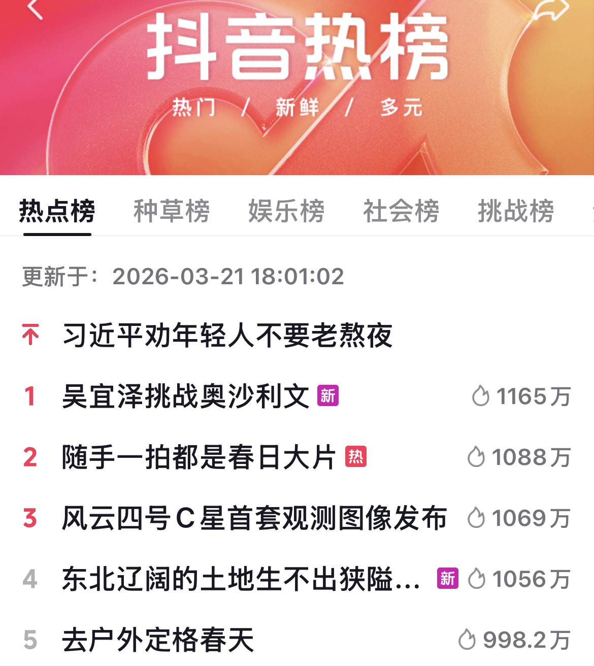 打开动静新闻客户端,刷动静听新闻。社交媒体热点打捞,洞悉社会情绪,最后来看各大热榜,明天见!