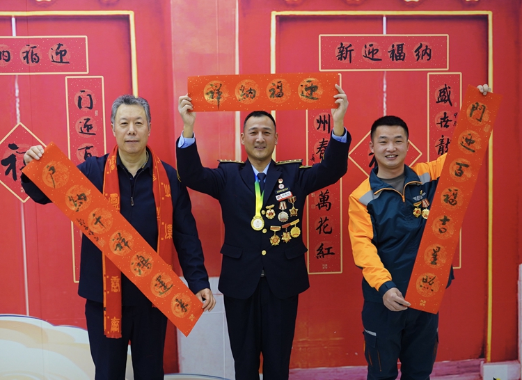 活动现场首先为劳模工匠代表赠送了记录各自工作镜头的最美劳动者微笑照和装有手套、围巾、保温杯等的新春福包。