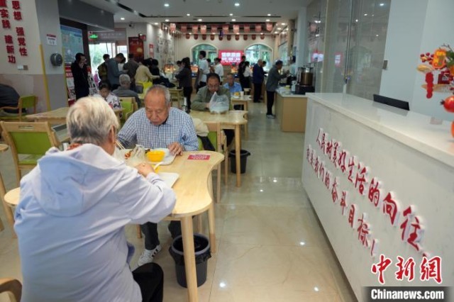 9月11日,老年人在位于甘肃省兰州市西固区西固城街道的“智慧食堂”用餐。中新社记者 毛建军 摄