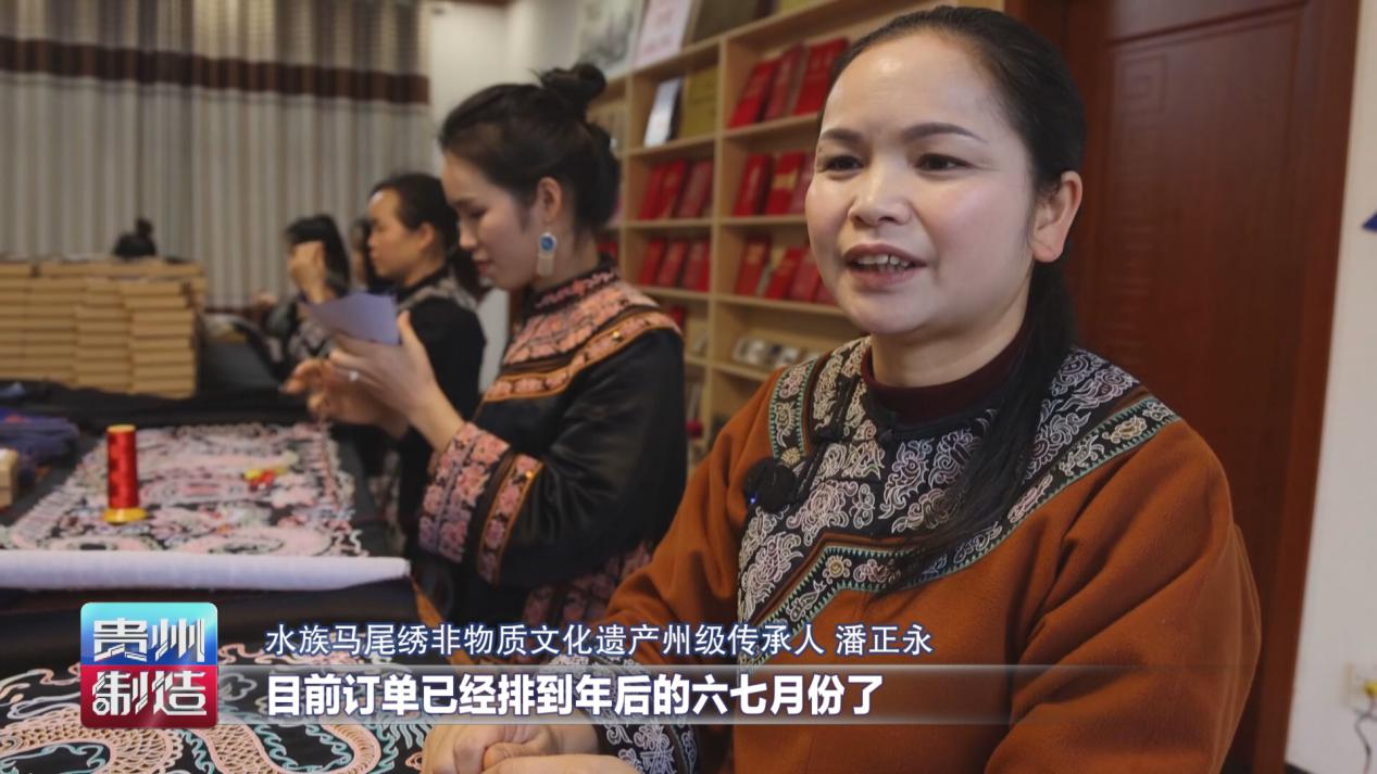 水族马尾绣非物质文化遗产州级传承人潘正永介绍,他们今年接的马元素马尾绣的订单比较多,现在姐妹们都在赶制订单,目前订单已经排到年后的六七月份了,产品主要卖到北京、深圳等地。