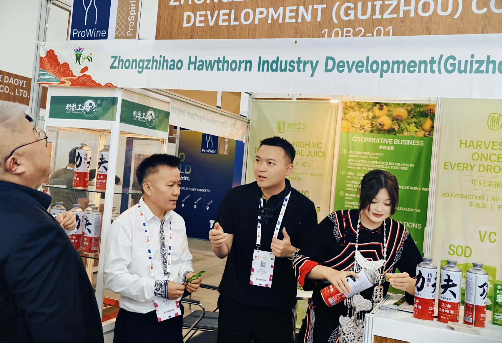 开幕式结束后,展会主办方代表、ProWein Düsseldorf项目总监Frank Schindler先生与ProWine Shanghai及ProWine Hong Kong项目经理宗蕊(Ivy Zong)女士到贵州展区参观指导。贵州展团负责人详细介绍了贵州白酒产业的发展现状、参展企业情况以及此次参展的预期目标。Frank Schindler先生对贵州展团给予高度评价,并表示贵州白酒以其独特的香型和深厚的文化底蕴,日益受到国际市场的关注,期待未来与贵州省商务厅在展会合作、产业对接等方面开展更深层次的合作。