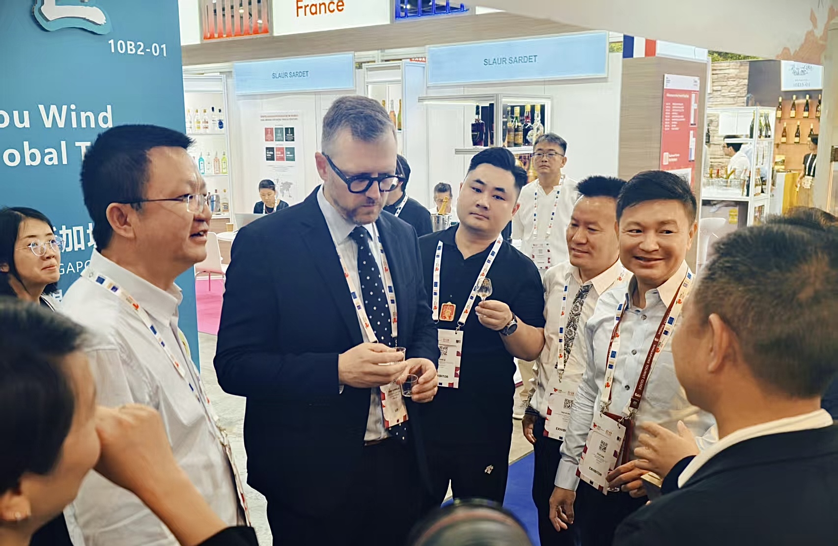 展会期间,贵州展团将通过展位品鉴、供需对接、酒文化展示等多种形式,全方位推介贵州优质酱酒及特色酒品。各参展企业精心准备了产品展示与互动体验活动,邀请国际采购商品鉴酱香白酒的独特风味,了解贵州酒文化的深厚底蕴。展会现场人头攒动,来自新加坡、马来西亚、泰国、菲律宾等国家和地区的专业买家纷纷驻足贵州展区,与参展企业就产品代理、渠道合作等事宜进行洽谈对接,现场气氛热烈。