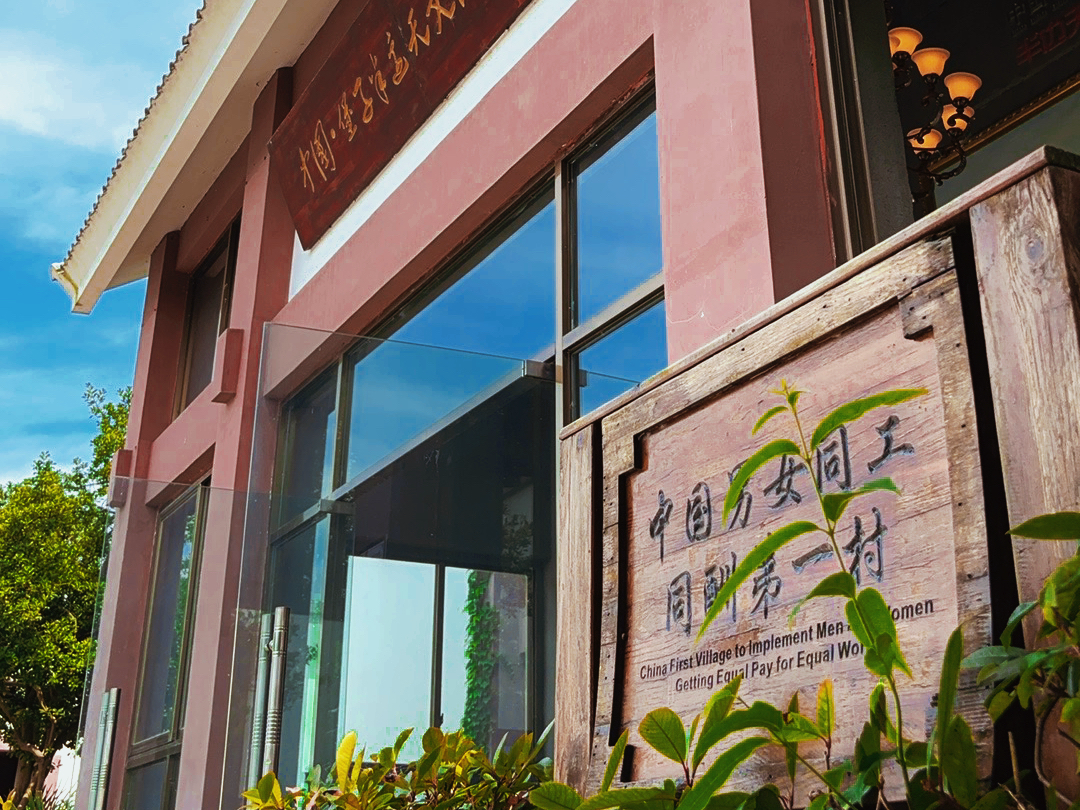 (中国男女同工同酬第一村牌匾)