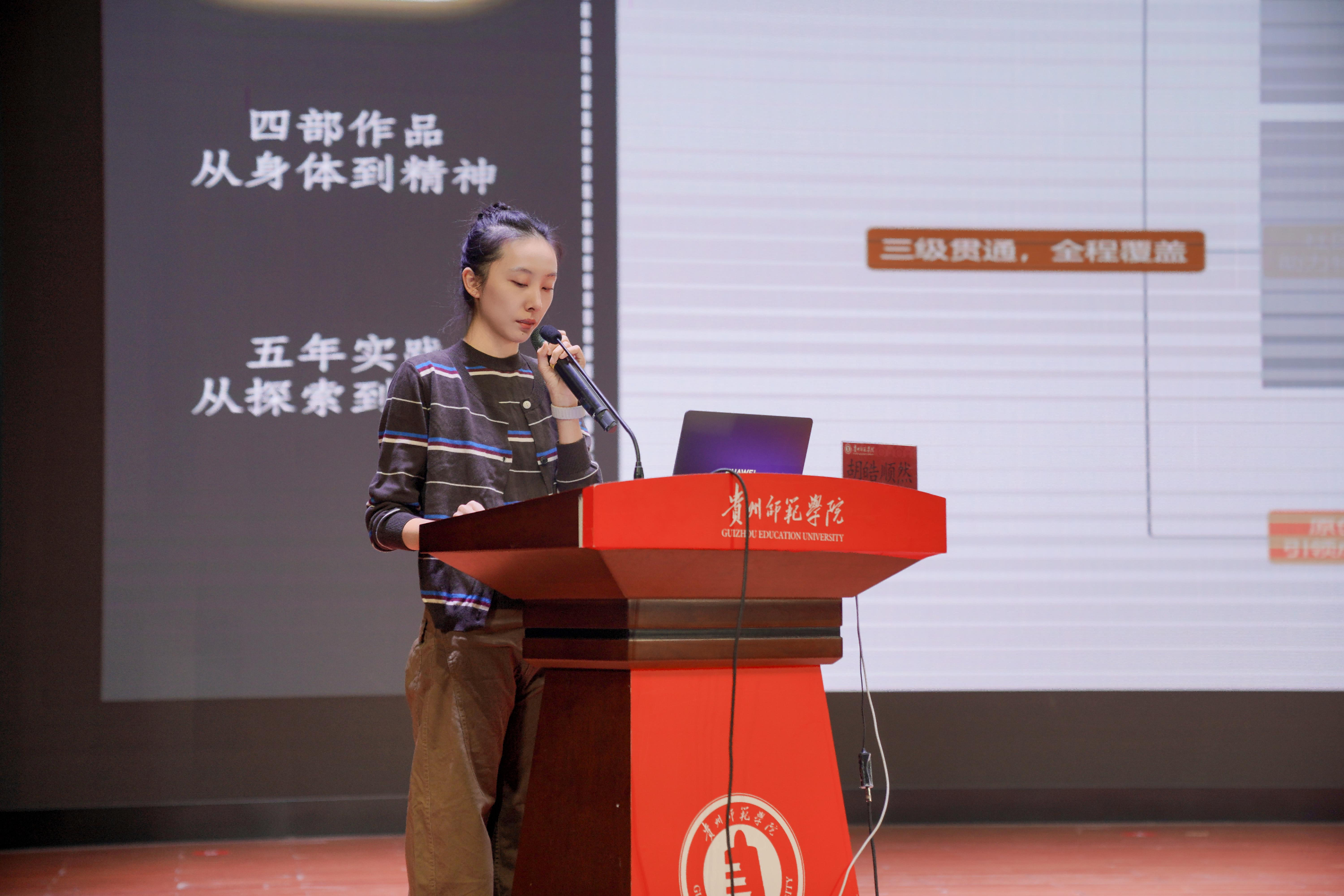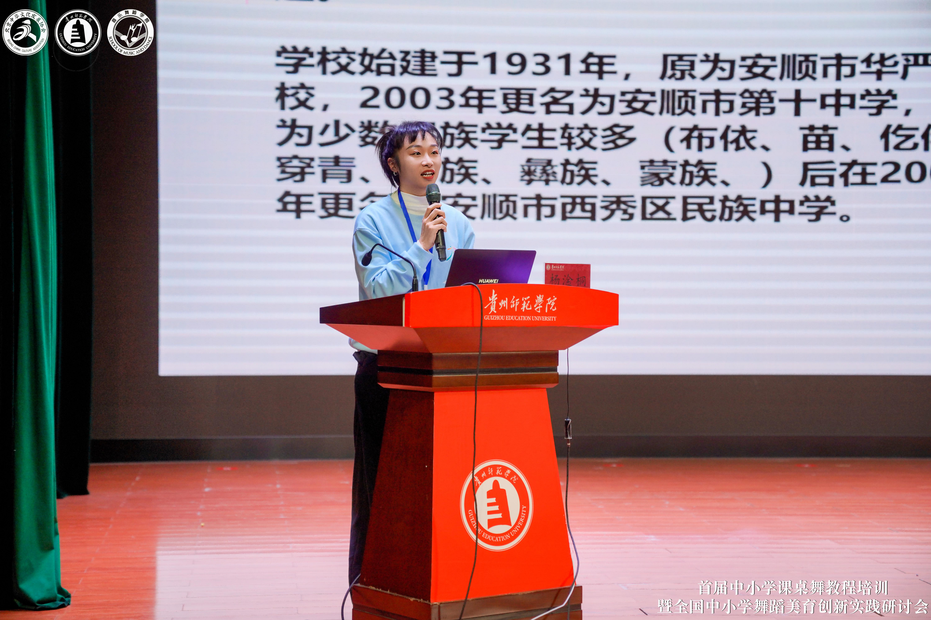研讨会上半场主要围绕中小学舞蹈美育的教学实践创新来展开。北京一零一中教育集团舞蹈项目负责教师、石油分校银帆舞蹈团负责人胡皓顺然坚持润心与审美、过程与成果等四大统一,以师生共创、采风融合等方式,将育人目标贯穿创作;中国舞蹈家协会会员,北京市舞蹈高级教师张烨基于艺术通感与学科关联性,提出舞蹈跨学科教学;北京师范大学贵安新区附属学校初中舞蹈教师、校舞蹈组组长、初中舞蹈团负责人王一清依托课桌舞教材细化资源,实践成效良好,未来将设计课程与活动一体方案,聚焦学生参与体验;贵州省安顺市西秀区民族中学教师杨淦桐将非遗安顺地戏融入课桌舞,邀请非物质文化遗产代表性传承人进校园,申请区级课题探索实践;贵阳一中舞蹈教师,中学高级教师,贵阳市骨干教师张军提出三点期许,盼强化教师归属感、优化师范学情研究、拓宽舞蹈受众,推动美育常态化浸润;贵州省青少年活动中心青少年活动科科长张惠作为上半场评议人对以上进行点评,他指出贵州舞蹈美育校际差距大,建议推动资源均衡共享、重视文化传承与原创主题,坚持方法与热爱。