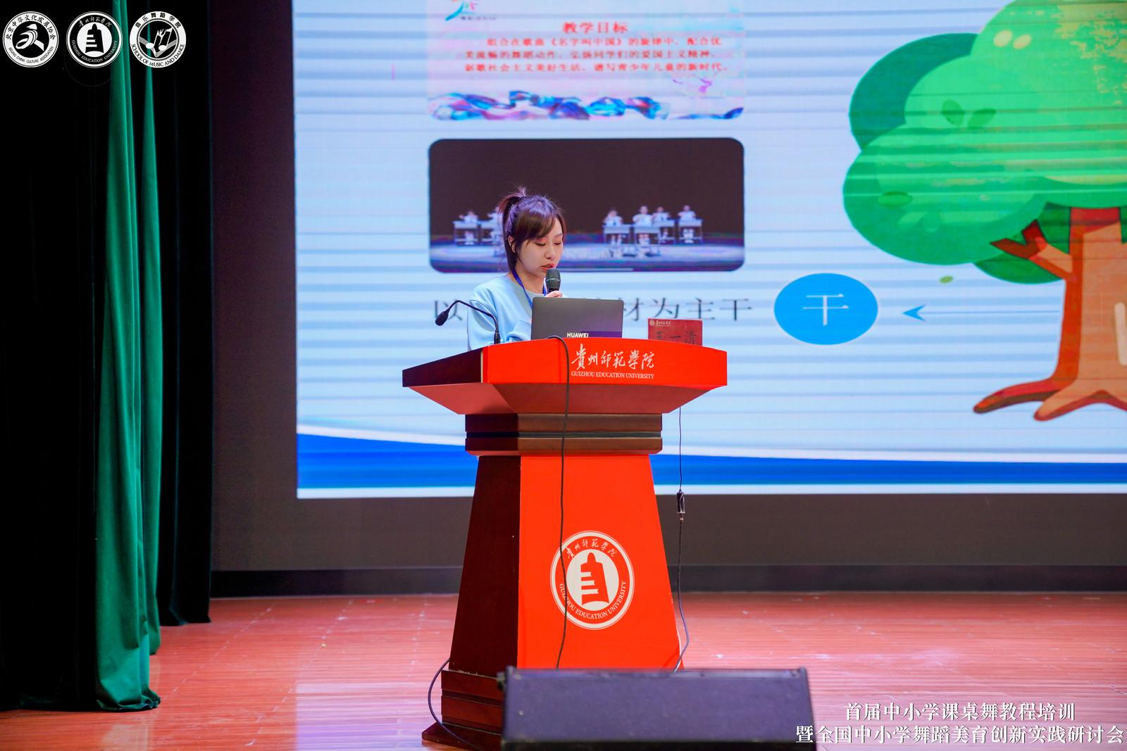 下午两点整,在凤凰广场开展了课程汇报,除了上午的专家,到场的嘉宾还有校党委常委、副校长陈真波,贵州师范学院教务处处长杜宏博,首都师范大学音乐舞蹈学院原副院长、教授博士生导师田培培,贵州省舞蹈家协会驻会副主席张苏苏,以及云岩区教育系统、乌当区教育系统、各地州高校与中小学代表负责人,此次汇报由肖伟主任主持,陈真波副校长发表致辞,他表示课桌舞打破了传统舞蹈教学对专业场地、技能基础的限制,可覆盖至中小学每一间教室,让舞蹈美育真正惠及全体学生。汇报现场中,小朋友们舒展的姿态既展现出课桌舞的韵律感,也传递出美育活动里的协作与热情。两点三十分,由首都师范大学音乐(舞蹈)学院原副院长,教授、博士生导师田培培开展讲座,她进一步阐释,优质的课桌舞实践是“内在认知与外在制作统一的多维度创造性事件”:既需要创作者理解青少年的肢体特点、课堂空间的功能属性,也要将美育目标、文化元素融入动作设计,让学生在有限的“课桌阵地”中,实现肢体表达、审美感知与文化理解的同步提升。后由云南师范大学教师常虹、周历黔南州教育科学研究所周历、益阳市南县五小教育集团竺萱围绕课桌舞实践的感悟与收获进行了交流总结,她们一致认为,课桌舞的“小”是形式,“大”是价值,未来会继续细化教学资源、设计更贴合学生特点的课程,让这一形式真正成为校园美育的常态化实践。