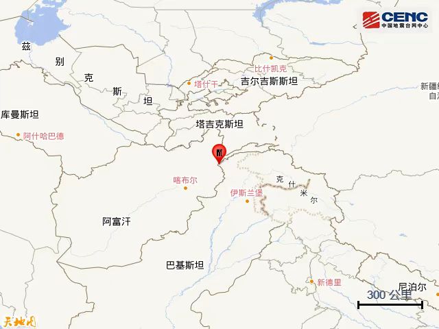 周边城市:震中200公里范围内有2座大中城市,最近为霍罗格(Khorog),距震中约161公里。